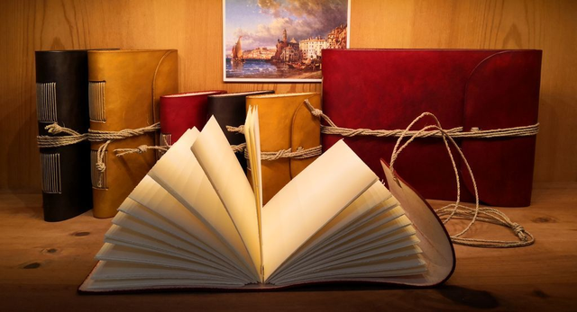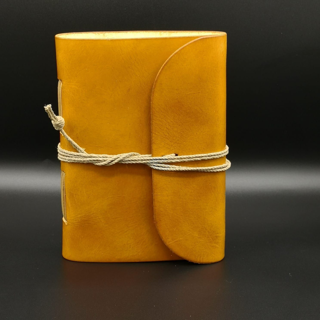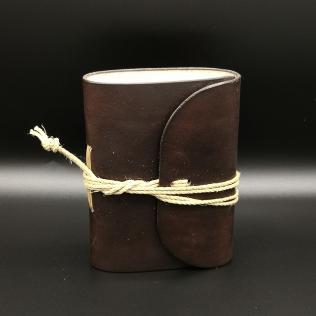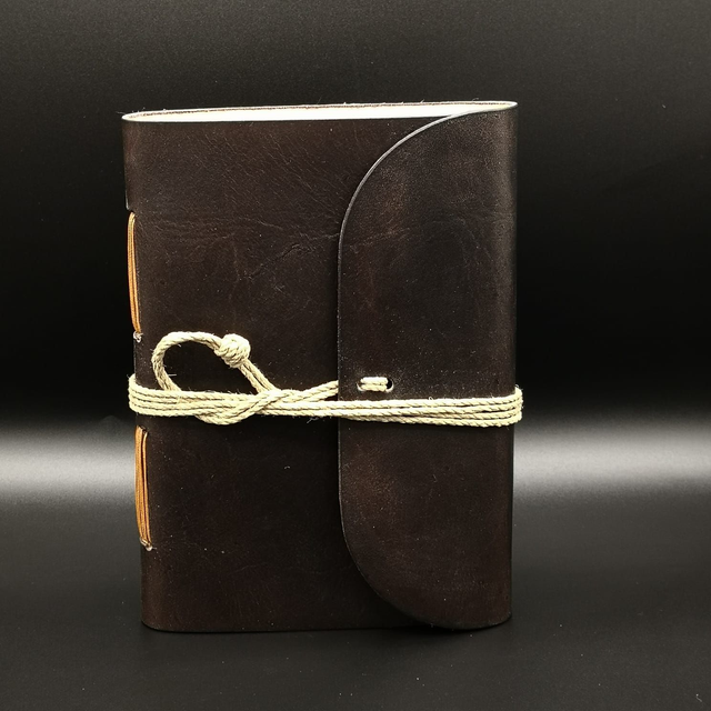 Taccuino in cuoio tinto a tampone, rilegato a mano con carta di cotone da 120 gr/mq